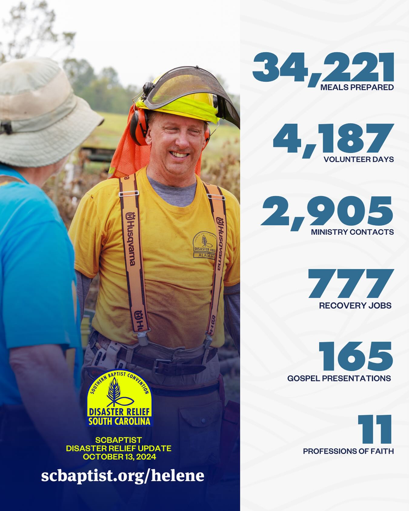 Please pray for these responders and residents impacted by the storm. In addition to chainsaw crews, assessments are being made about what needs exist and how SCBaptists can best respond. As you serve and connect with your neighbors, share God’s love in word and deed.